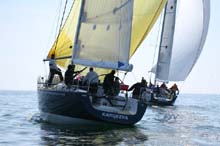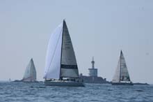 Les bateaux du rond C au Spi Ouest France Bouygues Télécom en baie de Quiberon organisé par la Société Nautique de la Trinité sur Mer.