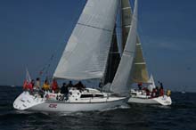 Les bateaux du rond C au Spi Ouest France Bouygues Télécom en baie de Quiberon organisé par la Société Nautique de la Trinité sur Mer.
